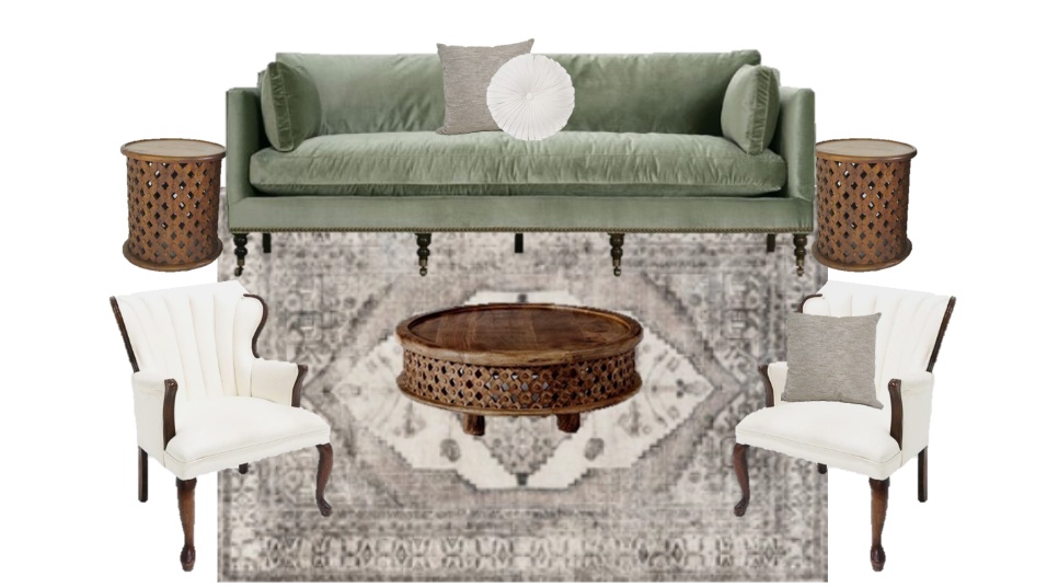 Collection Collection Styled Lounges Alice Lounge Search View Wishlist alice lounge Quantity: 1 Add to Wishlist Kit Contains farrah chair astor side table medallion rug margot sofa round white velvet pillow astor coffee table grey velvet pillow set of 3 pillows