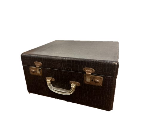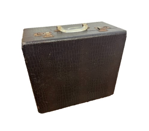 Collection Collection Large Details Alligator Suitcase Search View Wishlist alligator suitcase Description: dark brown vintage alligator suitcase Quantity: 1 Dimensions: 8 x 16 x 14 Add to Wishlist