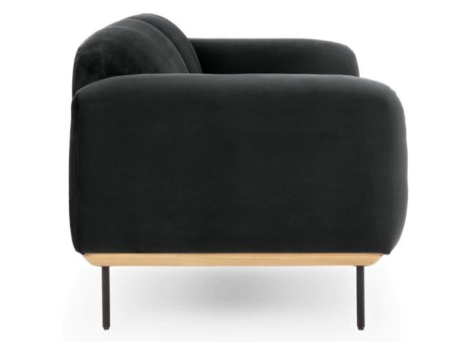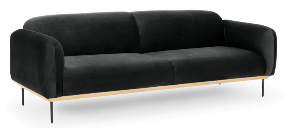 modern charcoal velvet sofa with clean lines, yet soft edges. just shy of 8', he comfortably seats up to 4. 3+ available november 2019.