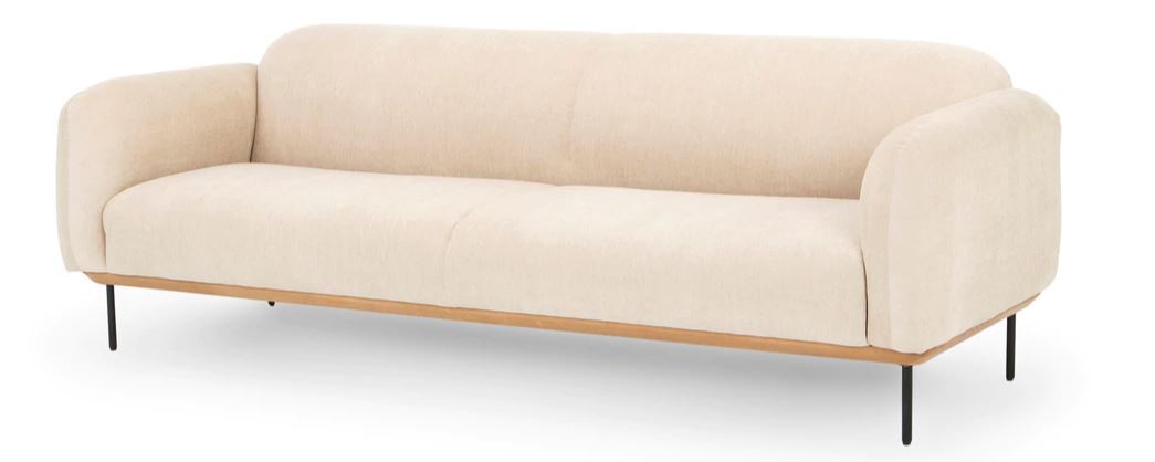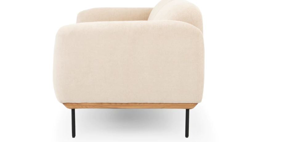 modern white sofa with clean lines, yet soft edges. just shy of 8', he comfortably seats up to 4.