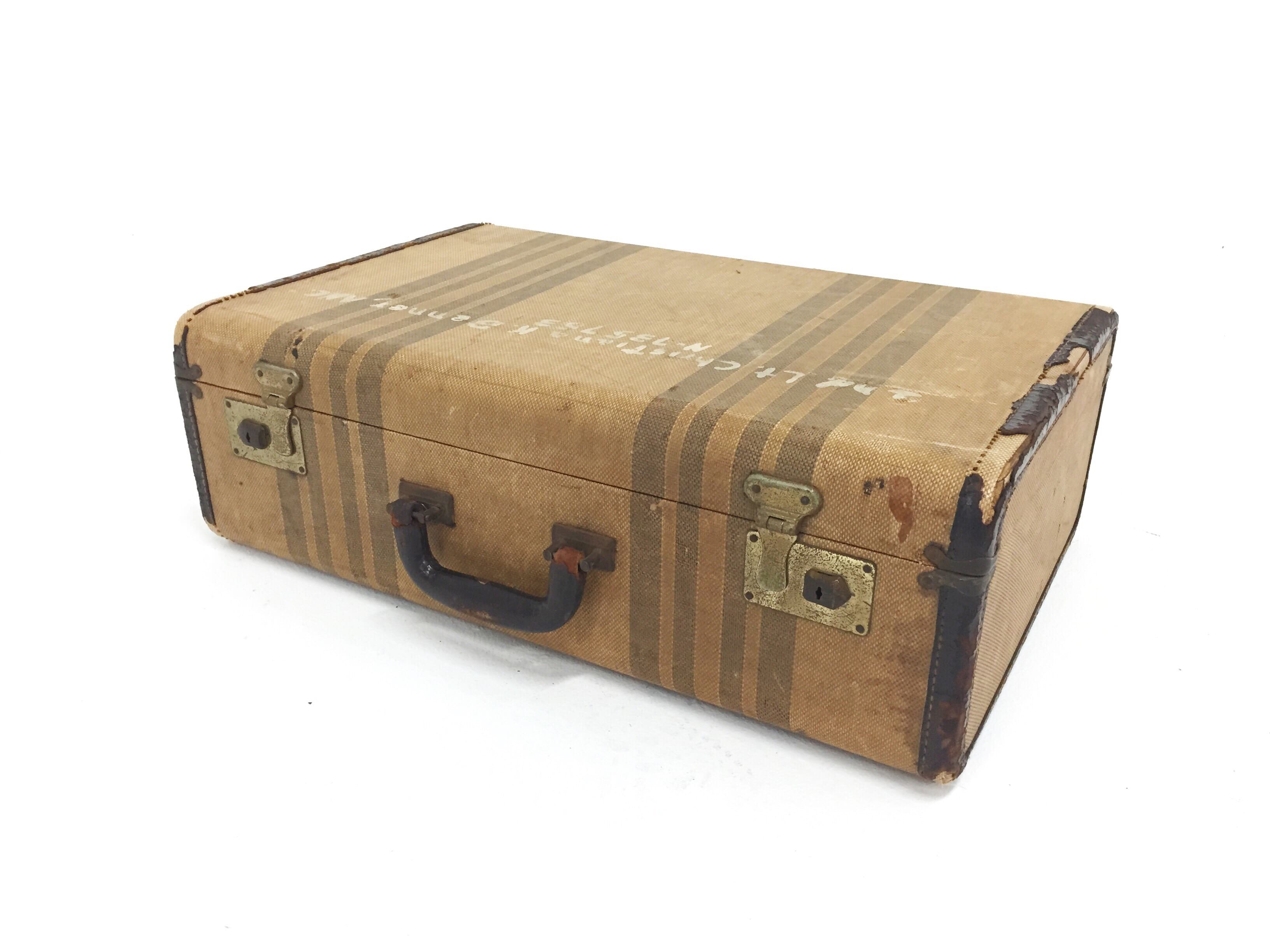 Collection Collection Large Details Benny Tan Striped Suitcase Search View Wishlist benny tan striped suitcase Description: tan stripped suitcase with dark brown interior Quantity: 1 Dimensions: 21 x 13 x 7 Tags: travel, suitcase, stripes, tan Add to Wishlist