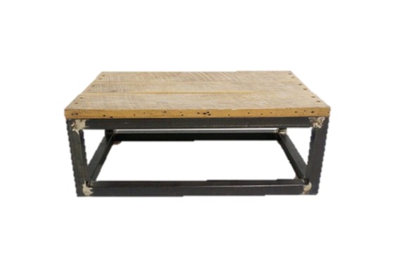 the perfect mix of reclaimed wood and metal combine to make this a unique coffee table. great to pair with a manly lounge vignette or with our new boho collection.