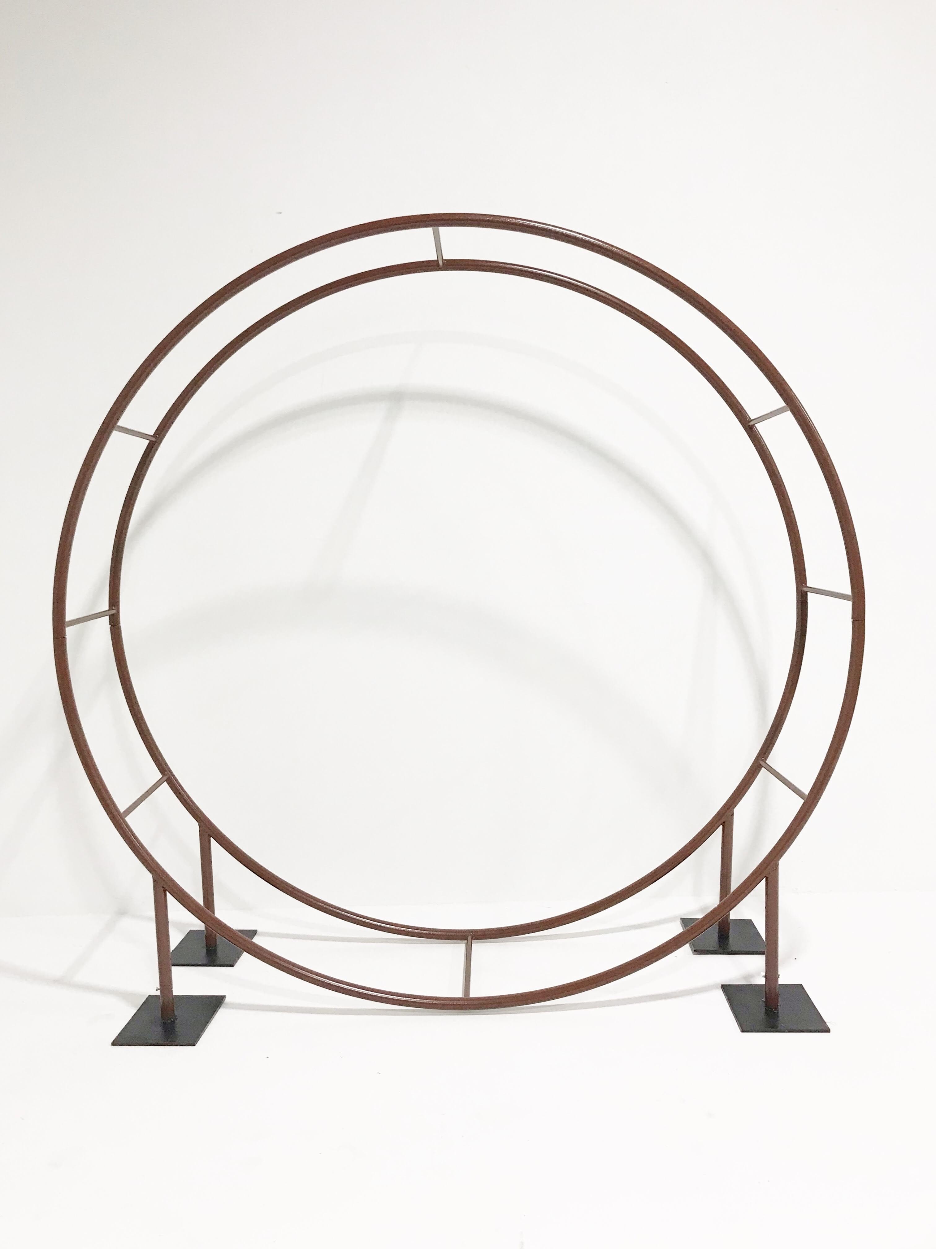 Collection Collection Architectural Circle Arch Search View Wishlist circle arch Description: giant 8' x 8' circular arch. can be used as a shelf with removable shelves. great for a ceremony backdrop Quantity: 1 Dimensions: 96 x 20 x 96 Add to Wishlist