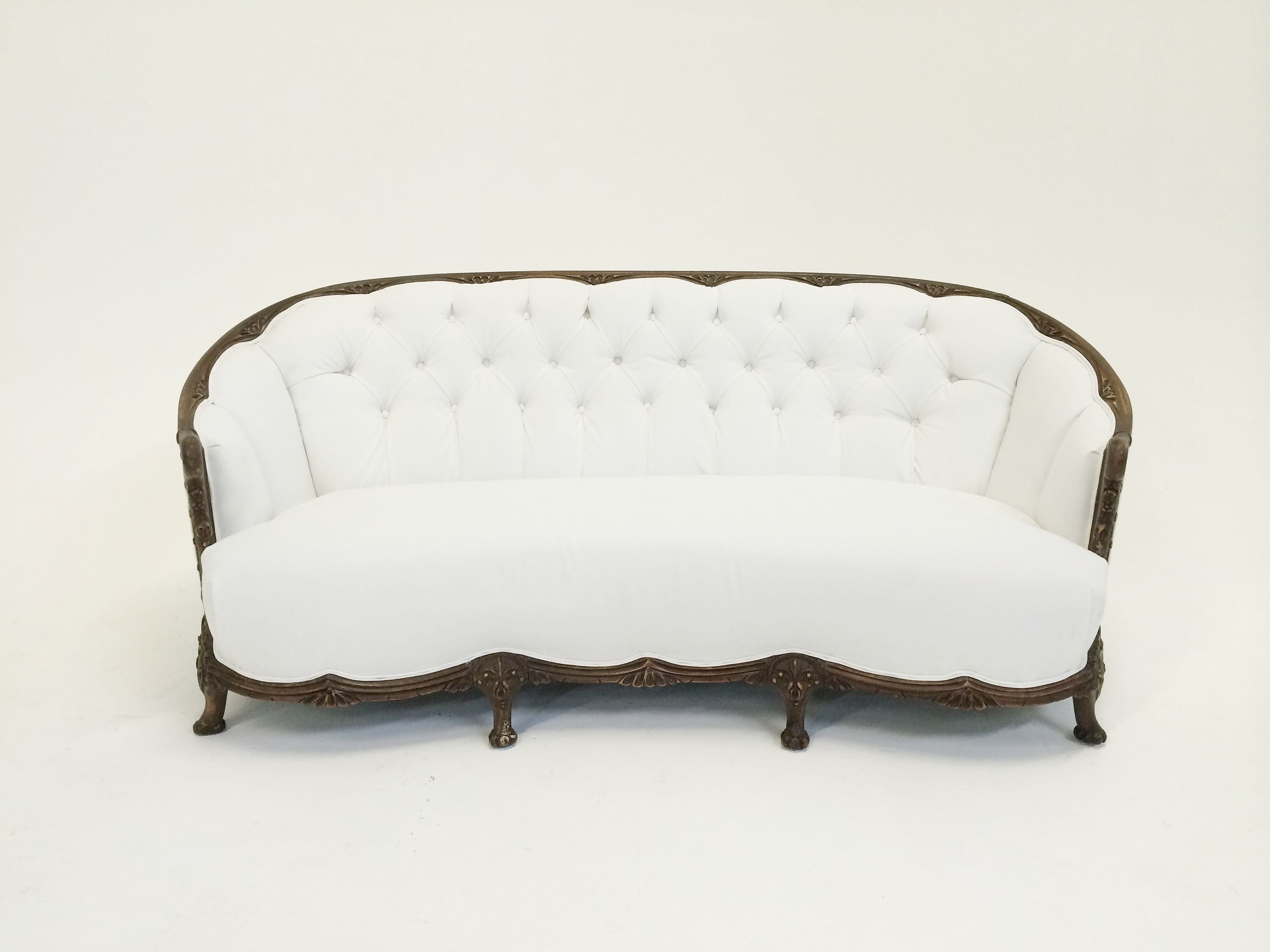 Collection Collection Upholstered Seating Colette Sofa Search View Wishlist colette sofa Description: white tufted sofa. seats 3-4. Quantity: 1 Dimensions: 77 x 36 x 33 Tags: white, sofa, tufted, lounge Add to Wishlist