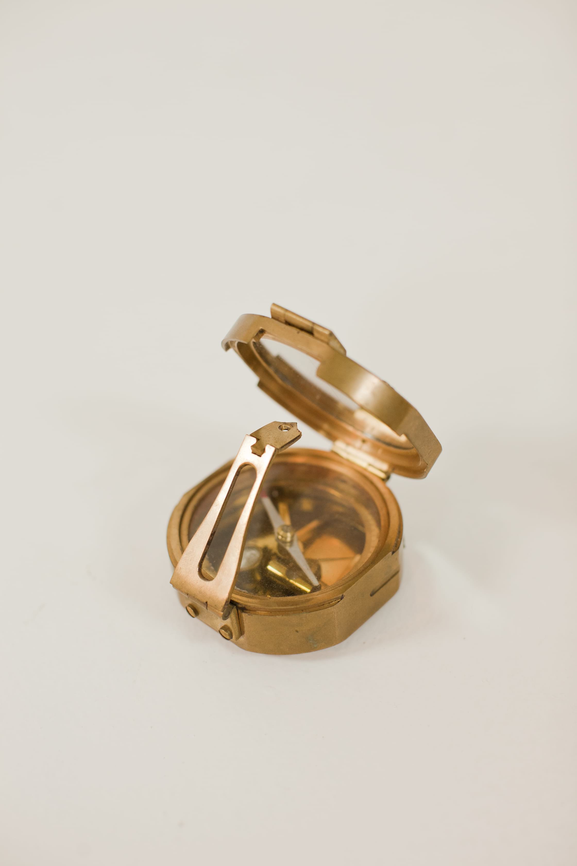 Collection Collection Small Details Compass Search View Wishlist compass Description: vintage brass compass. Quantity: 1 Dimensions: 4 x 4 x 3 Tags: travel, brass, nautical, gig harbor Add to Wishlist