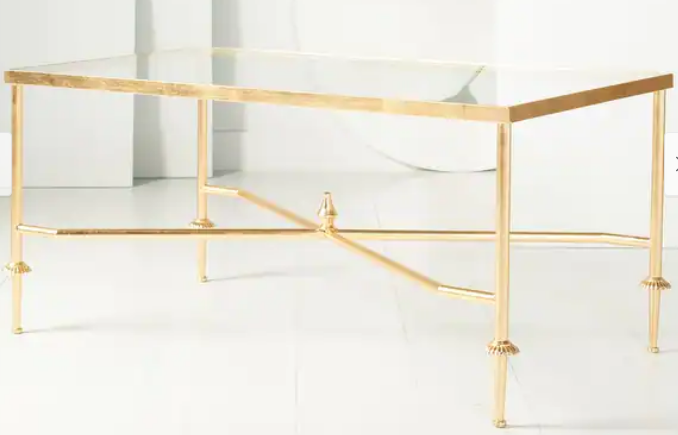 Collection Collection Coffee + Side Tables Devi Coffee Table Search View Wishlist devi coffee table Description: glass top, royal gold table Quantity: 2 Dimensions: 24 x 44 x 21 Tags: new item Add to Wishlist