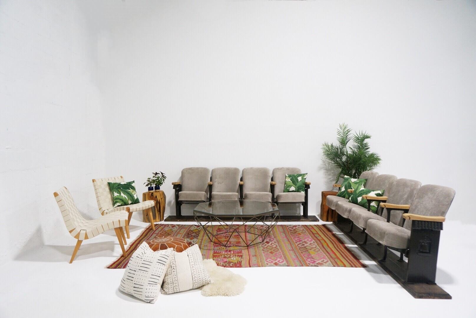 Collection Collection Styled Lounges Encitas Lounge Search View Wishlist encitas lounge Description: this unique lounge grouping offers seating for up to 11 guests. Dimensions: 144 x 144 Add to Wishlist Kit Contains white sheepskin grady stump table sydney moroccan pouf - tan olympia theater seats - grey gramercy coffee table beckham chair set of 3 pillows