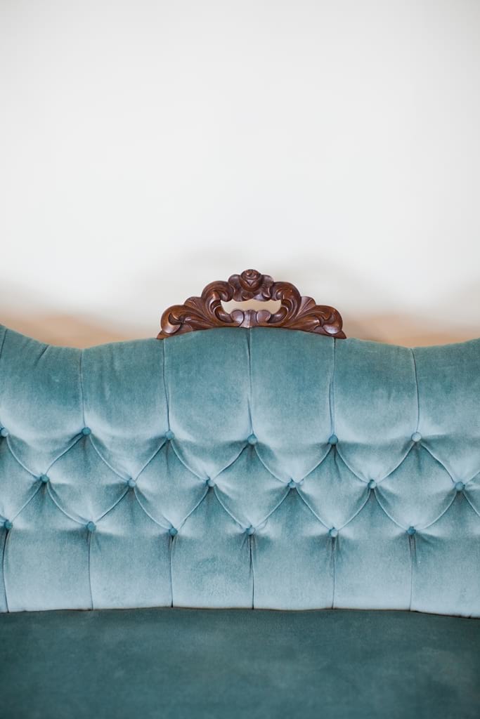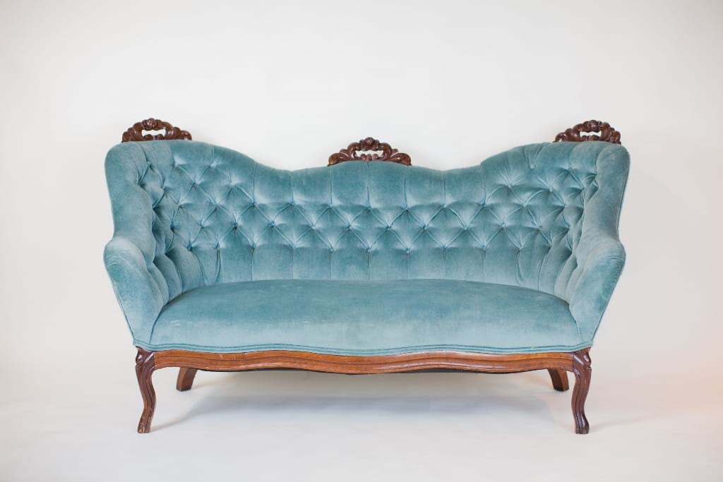 Collection Collection Upholstered Seating Geraldine Sofa Search View Wishlist geraldine sofa Description: this sofa is teal blue, velvet, and tufted, with dark wood details. seats 2-3. Quantity: 1 Dimensions: 63 x 25 x 35 Tags: blue, lounge furniture, sofa, couch, tufted, velvet, teal, lounge Add to Wishlist