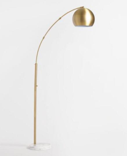 Collection Collection Lighting + Marquee Signs Hartwell Arc Lamp Search View Wishlist hartwell arc lamp Description: mid-century modern brass arc lamp with dome shade and white marble base. Quantity: 1 Dimensions: 12 1/2 x 78 Tags: lounge furniture, lamp Add to Wishlist