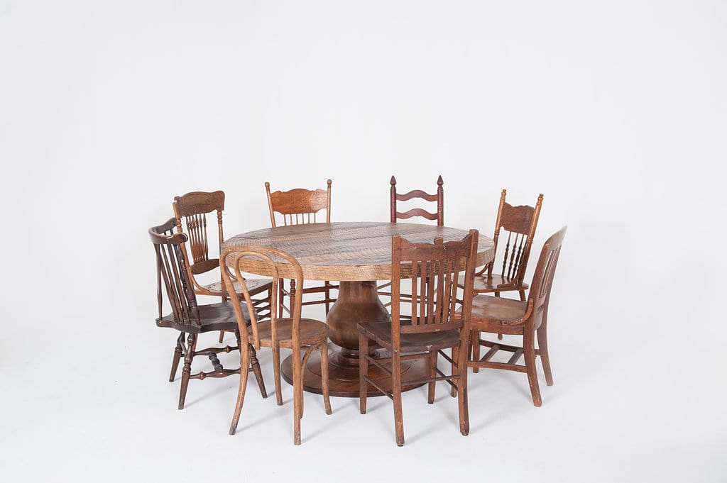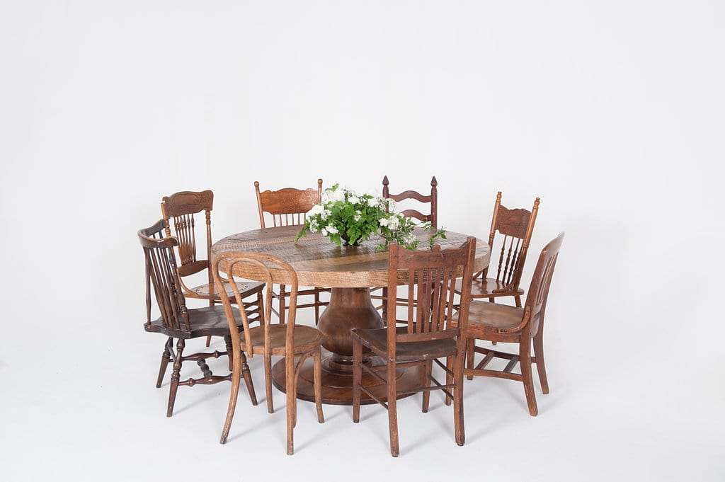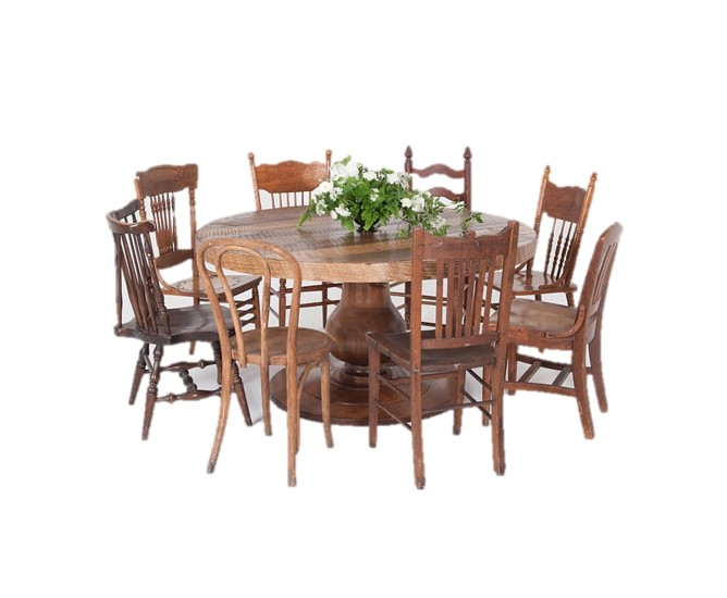 Collection Collection Dining + Cocktail Tables Kingston Table Dining Series: Mismatched Chairs Search View Wishlist kingston table dining series: mismatched chairs Quantity: 18 Dimensions: 96 x 96 x 42 Add to Wishlist Kit Contains mismatched dining chair kingston round