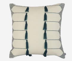 Collection Collection Textiles Lagoon Tassle Search View Wishlist lagoon tassle Description: These natural cotton pillows feature hand-stitched borders and hand-tied tassels in two bold colors Quantity: 20 Dimensions: 18 x 18 Add to Wishlist