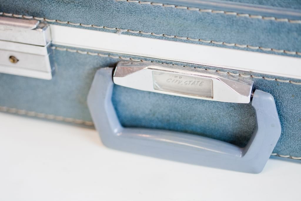 Collection Collection Large Details Light Blue Skyway Suitcase Search View Wishlist light blue skyway suitcase Description: light blue skyway suitcase with purple silk interior. perfect for stacking or to use for a gift table. Quantity: 1 Dimensions: 17 x 12 x 5 Tags: blue, travel, suitcase, gift table, light blue, purple Add to Wishlist