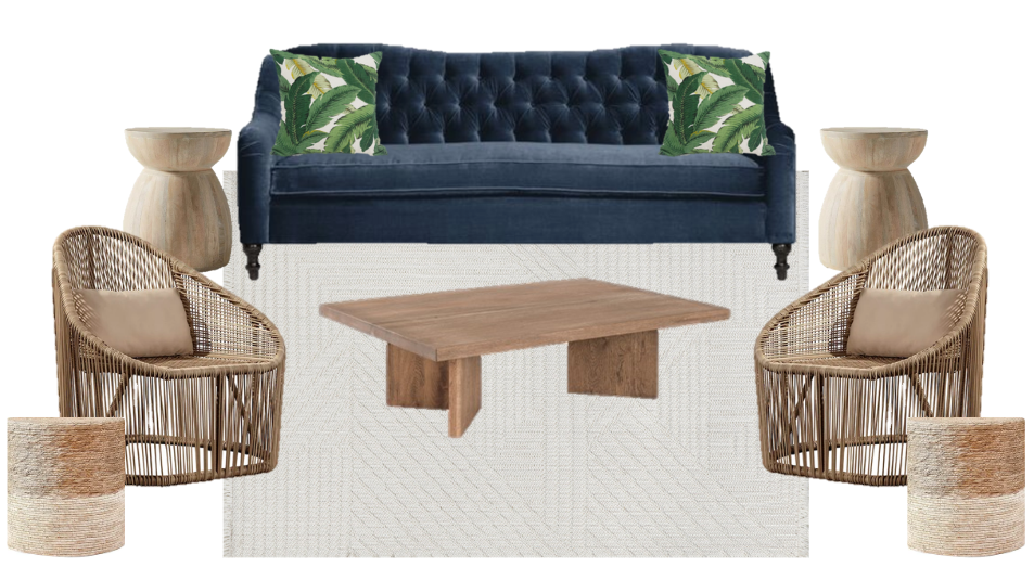 Collection Collection Styled Lounges Marlin Lounge Search View Wishlist marlin lounge Quantity: 1 Add to Wishlist Kit Contains zen rug bella side table montego chair dawson coffee table palm leaf pillow #1 (large) palm leaf lumbar pillow - dark waverly sofa set of 3 pillows wishbone jute pouf