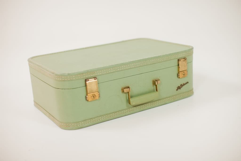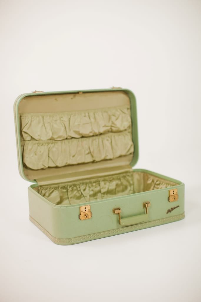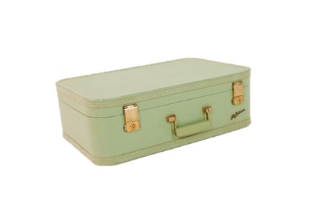 Collection Collection Large Details Mint Suitcase Search View Wishlist mint suitcase Description: mint suitcase with olive silk interior. Quantity: 1 Dimensions: 21 x 14 x 7 Tags: mint, green, travel, suitcase, mill valley Add to Wishlist