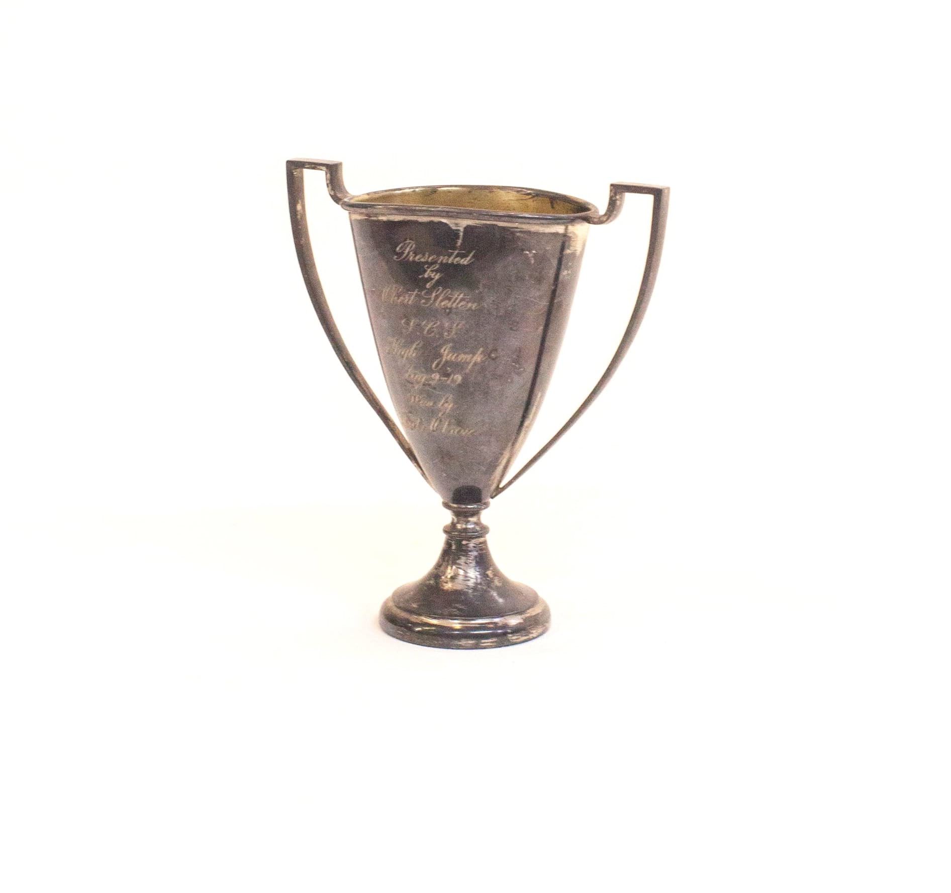 Collection Collection Small Details Obert Trophy Search View Wishlist obert trophy Description: vintage metal trophy with engraving and handles. perfect as a prop or filled with florals. Quantity: 1 Dimensions: 7 x 4 x 8 1/2 Tags: silver, florals, vessel Add to Wishlist