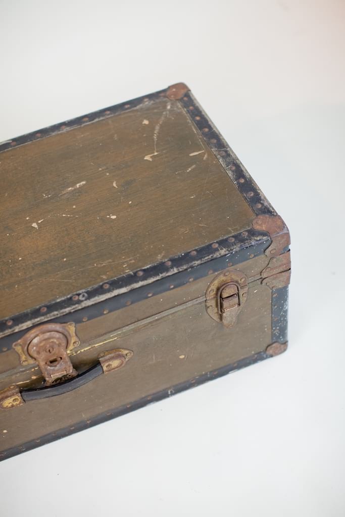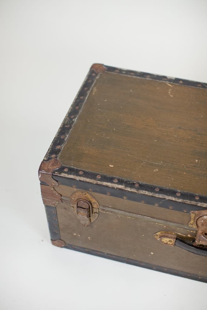 Collection Collection Large Details Oliver Trunk Search View Wishlist oliver trunk Description: olive green trunk with brass detail Quantity: 1 Dimensions: 31 x 16 1/2 x 12 1/2 Tags: trunk, travel, olive, brass Add to Wishlist