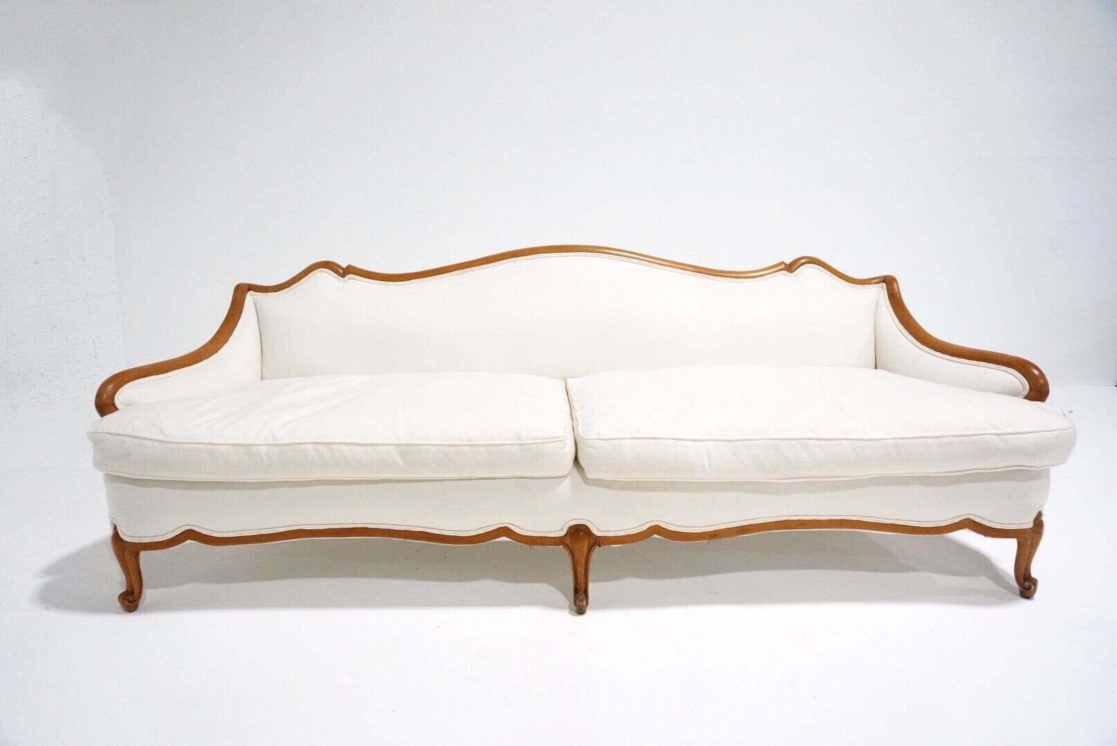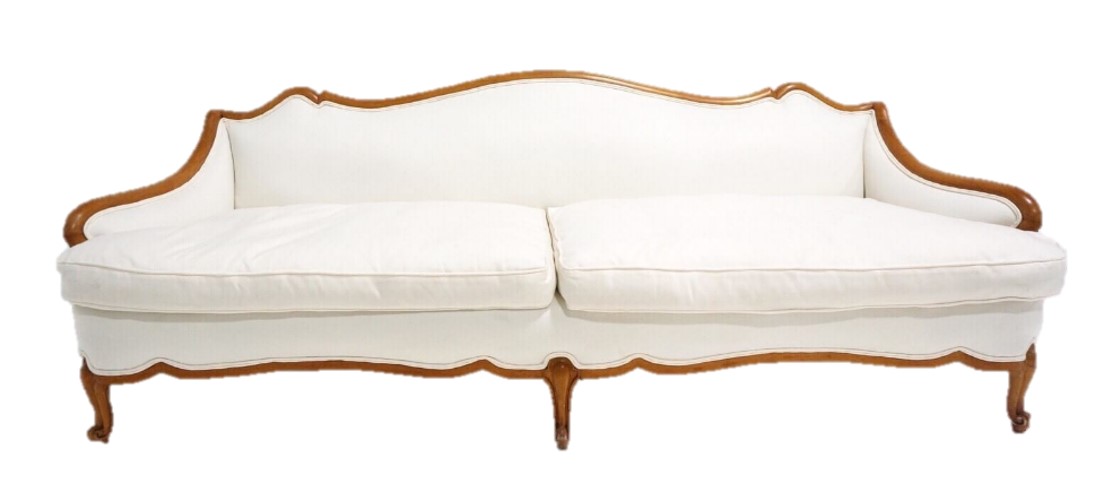 Collection Collection Upholstered Seating Paxton Sofa Search View Wishlist paxton sofa Description: white linen sofa from the 1950's. seats up to 4. Quantity: 1 Dimensions: 94 x 32 x 31 Add to Wishlist