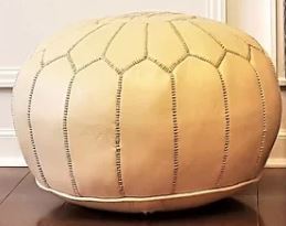 Collection Collection Upholstered Seating Sydney Moroccan Pouf - Cream Search View Wishlist sydney moroccan pouf - cream Description: cream leather moroccan pouf. Quantity: 3 Dimensions: 20 x 20 x 13 Tags: leather, boho, bohemian, moroccan Add to Wishlist