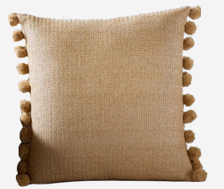 Collection Collection Textiles Taupe Pom Pom Search View Wishlist taupe pom pom Description: A neutral square pillow with a natural woven texture and pom pom trim Quantity: 21 Dimensions: 18 x 18 Add to Wishlist