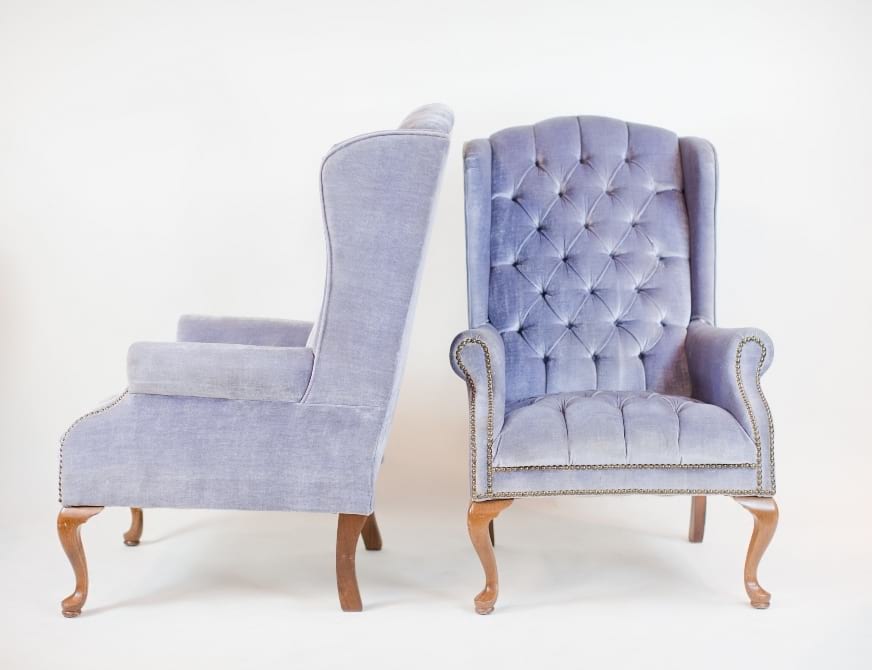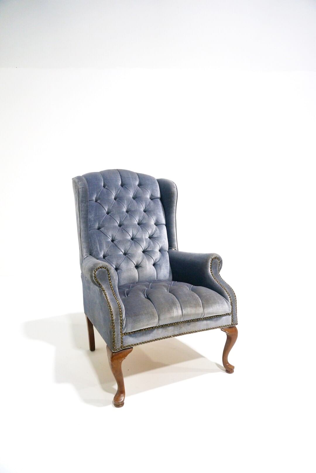 Collection Collection Upholstered Seating Thelma Chair Search View Wishlist thelma chair Description: light blue velvet tufted wingback chairs. Quantity: 2 Dimensions: 27 x 25 x 43 Tags: lounge furniture, light blue, tufted, velvet, chair, wingback, lounge Add to Wishlist