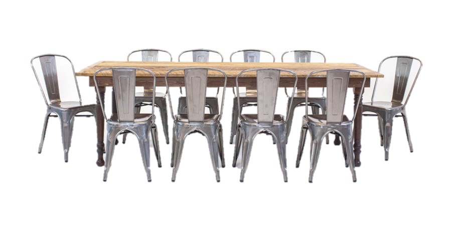 Collection Collection Dining + Cocktail Tables Thompson Farmhouse Dining Series: Remington Metal Chairs Search View Wishlist thompson farmhouse dining series: remington metal chairs Quantity: 30 Dimensions: 132 x 76 x 34 Add to Wishlist Kit Contains thompson farmhouse table remington metal chair
