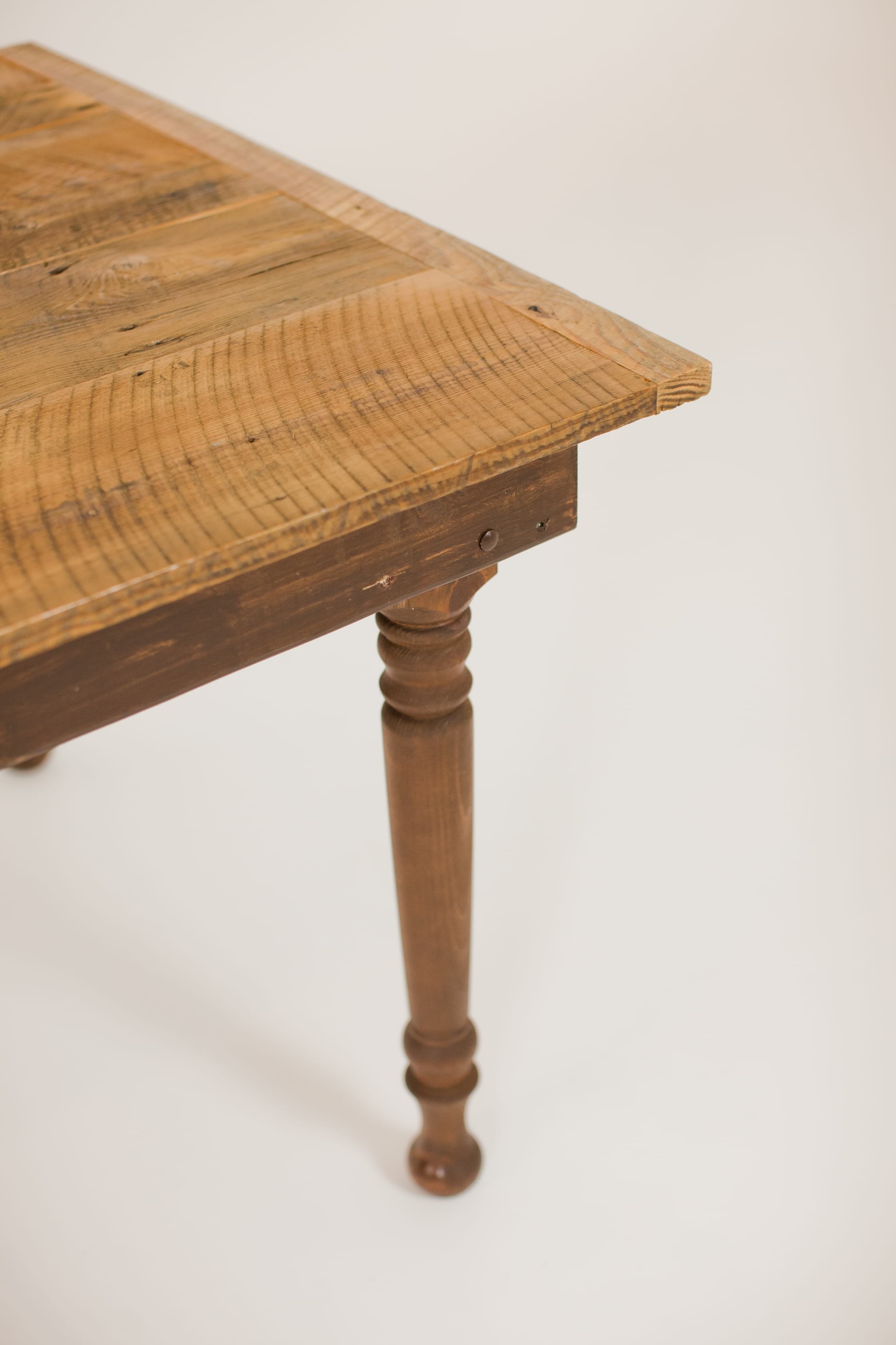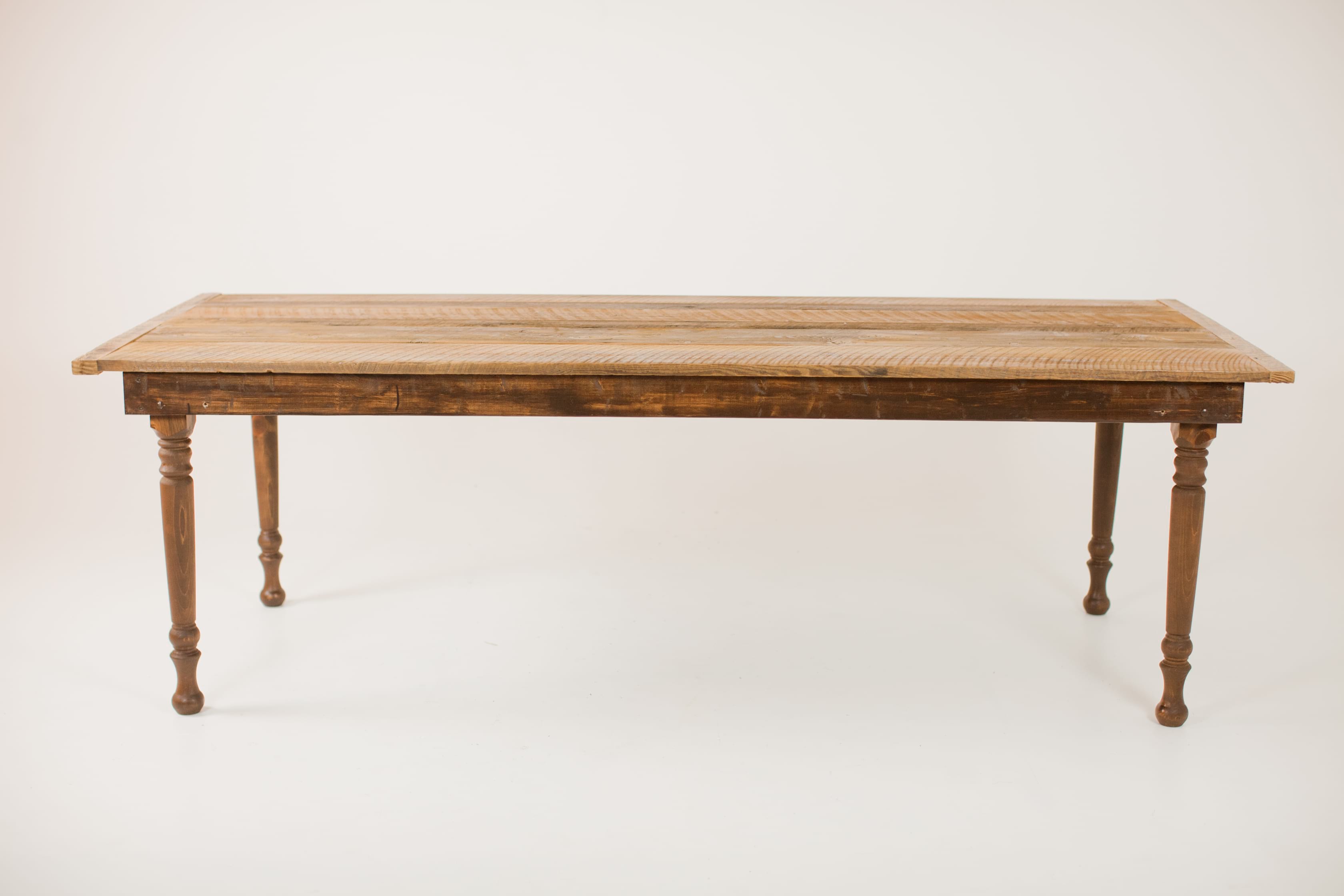 reclaimed barnwood farmhouse tables made of 100+ year old barnwood from tennessee. comfortably sits 8 to 10 guests. perfect to line up end to end family style or to use as individual tables.