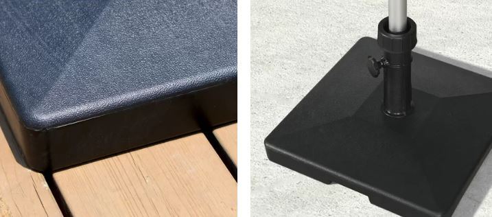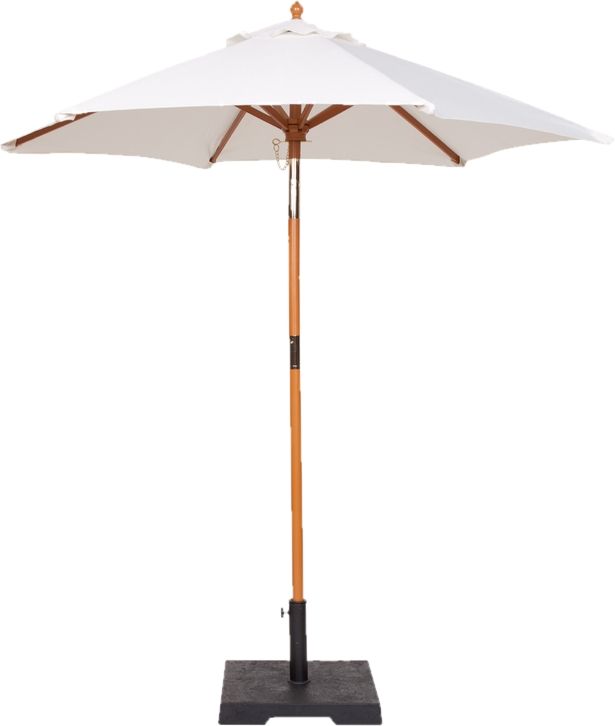 Our Coppergate Market umbrella canopy is a white woven polyester that is water repellant. It is perfect for your next outdoor event. It's included concrete base that will prohibit any movement.