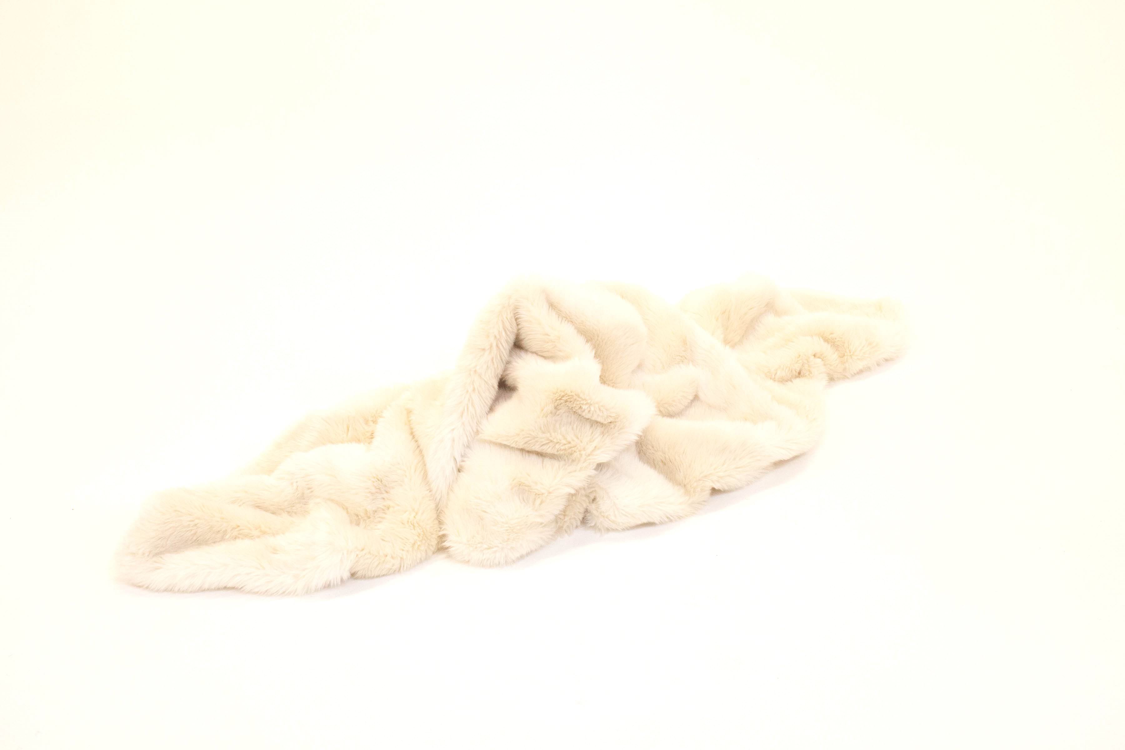 white faux fur throw