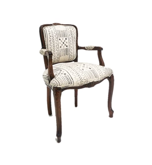 Collection Collection Upholstered Seating White Sierra Chair With Arms Search View Wishlist white sierra chair with arms Description: side chair upholstered in african mud cloth Quantity: 2 Dimensions: 24 x 17 x 36 Tags: chair, bohemian, seat Add to Wishlist