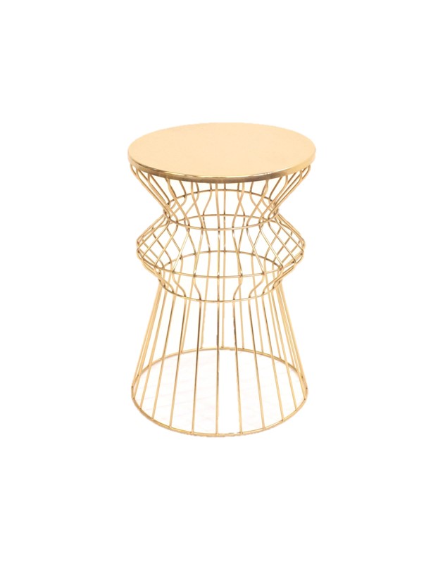 Collection Collection Coffee + Side Tables Zooey Table Search View Wishlist zooey table Description: gold wire side table. perfect to add to a mid-century, boho, or industrial style lounge vignette. Quantity: 4 Dimensions: 15 x 15 x 22 Tags: gold, mid-century, lounge furniture, industrial, lounge, boho, bohemian Add to Wishlist